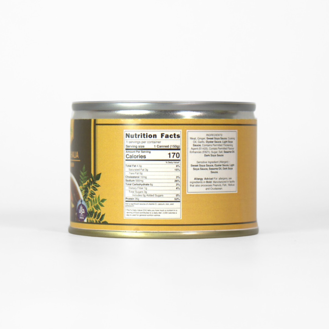 | Ingredients / Composition | Meat, Ginger, Sweet Soya Sauce, Cooking Oil, Garlic, Oyster Sauce, Light Soya Sauce, Permitted Thickening Agent (E1422), Pemited Flavour Enhancers (E621), Sugar, Salt, Sesame Oil and Dark Soya Sauce |