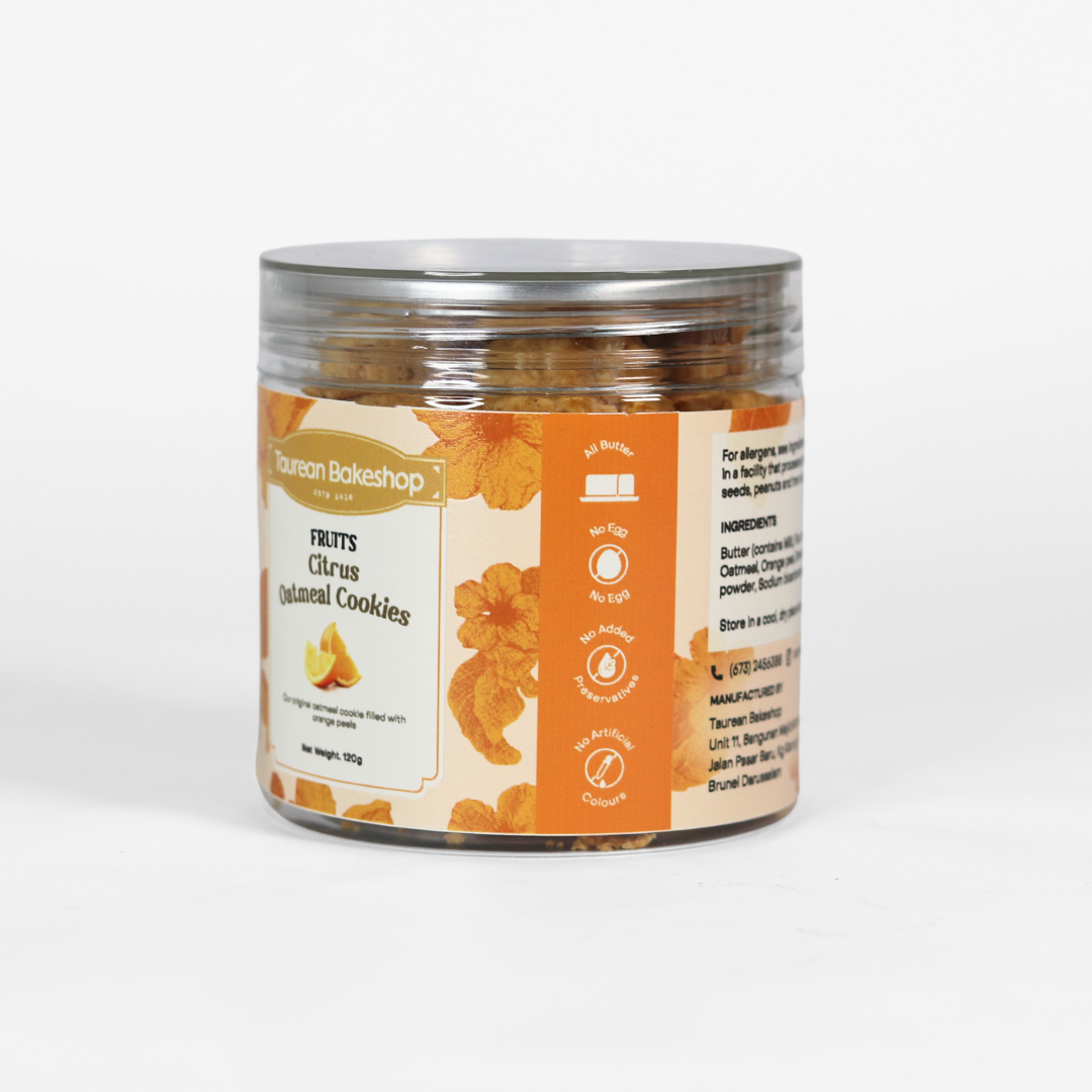 Our Citrus Oatmeal Cookies offer a unique flavor experience with its fusion of oatmeal cookies and zesty orange peel. Enjoy the perfect balance of crunchy texture and sweet citrus zing in every bite.