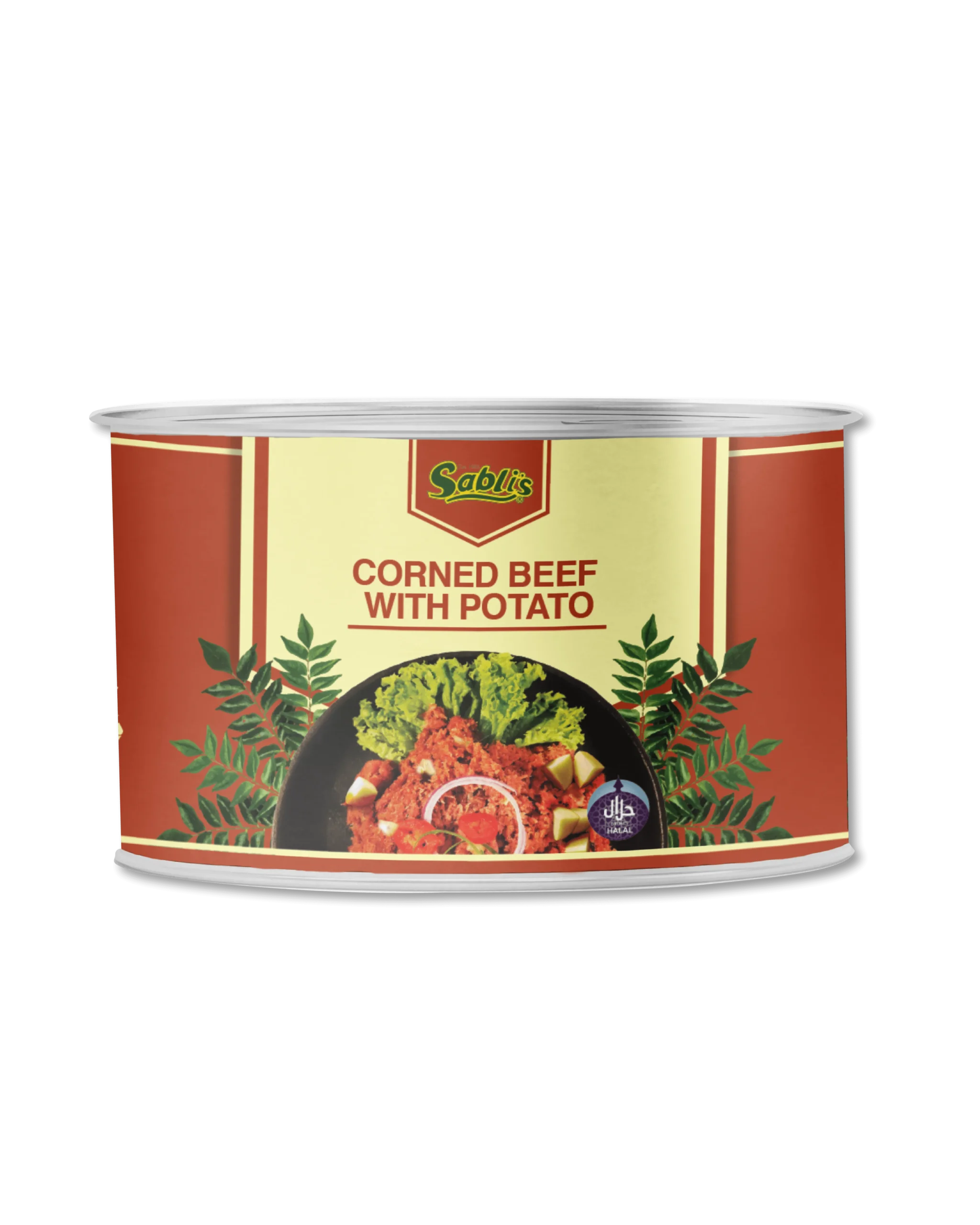 Sabli’s Corned Beef with Potatoes is a hearty, ready-to-eat dish made from premium beef cuts slow-cooked with Sabli’s signature seasoning and combined with tender diced potatoes for a rich, savoury flavour. Packed in a thick, flavourful gravy, it offers a satisfying texture and a balanced taste that appeals to both local and international consumers. Processed under strict hygienic standards to lock in freshness and ensure long shelf stability, this versatile product can be enjoyed straight from the can or sautéed for added aroma, pairing well with rice, bread, noodles, or as a filling for wraps and pastries.