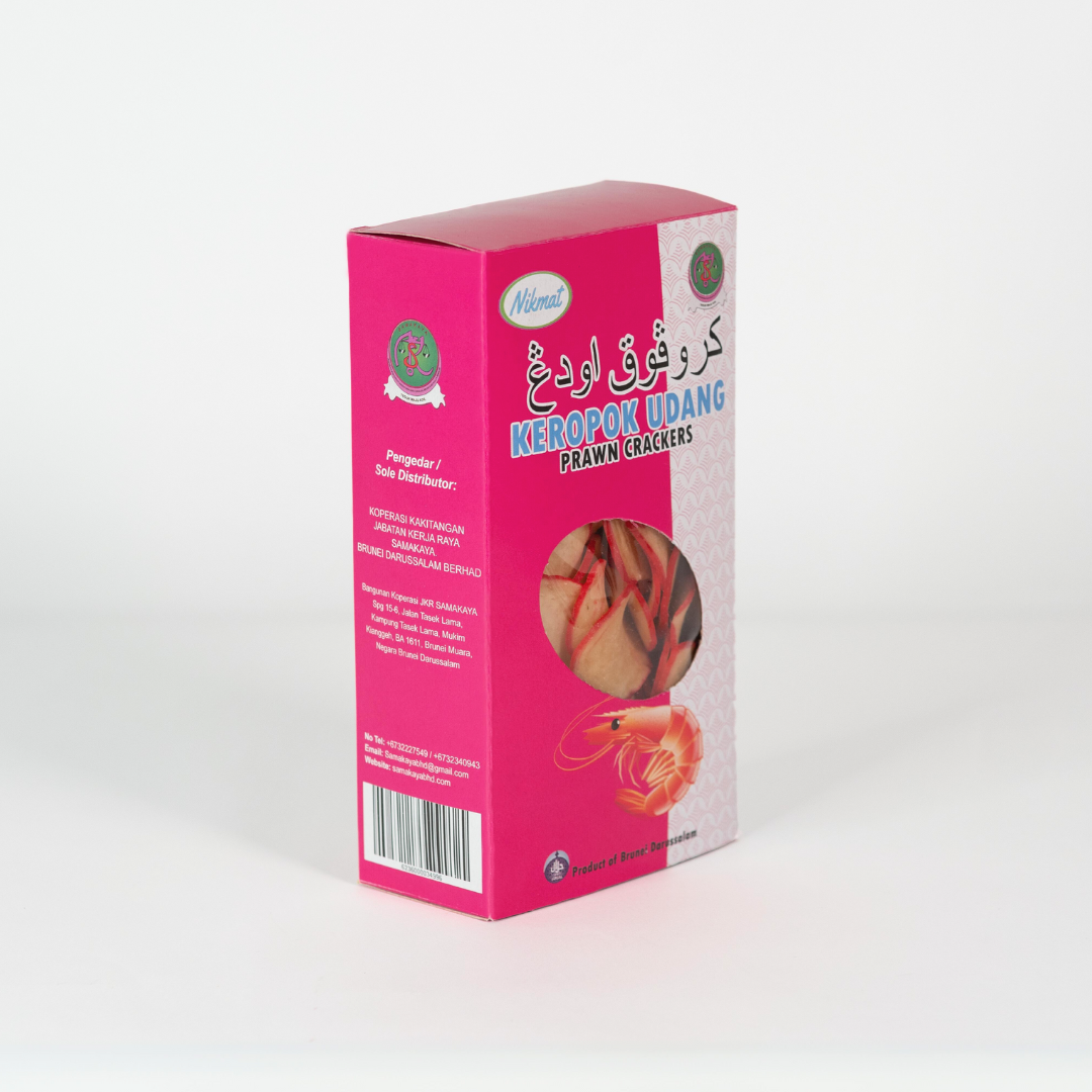 Fresh prawn from the brunei river, delightful taste prawn crackers. Each caracker is prefectly seasoned and baked to golden/white crisp, ensuring every bite is a savory sensation.