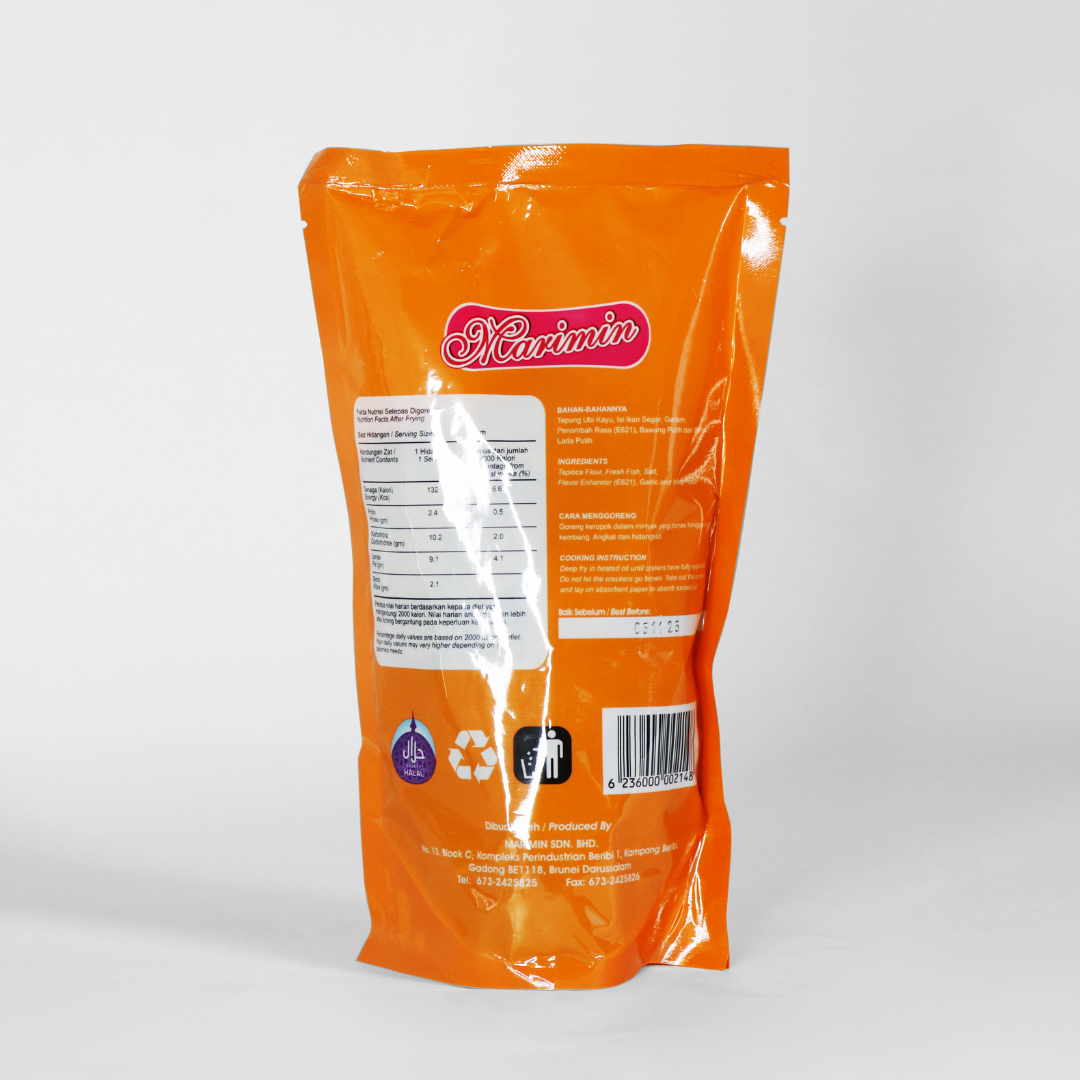 Ready-to-fry seafood based crackers (Fish). With no artificial flavour & no preservative added. We are Halal & ISO 22000:2018 certified company.