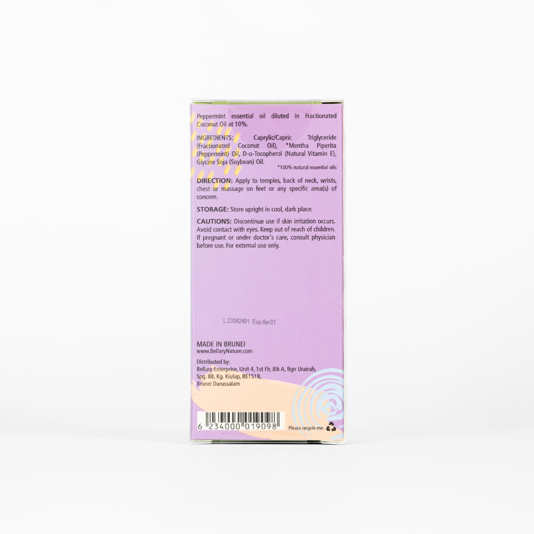 | Ingredients / Composition | Caprylic/Capric Triglyceride (Fractionated Coconut Oil), *Mentha Piperita (Peppermint) Oil, D-α-Tocopherol (Natural Vitamin E), Glycine Soja (Soybean) Oil. |