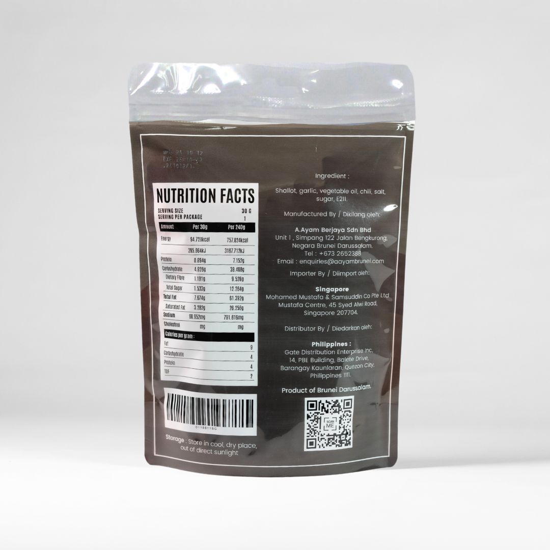 | Ingredients / Composition | Shallots, Vegetable oil, Soya soy, Sugar, Salt, E211 |