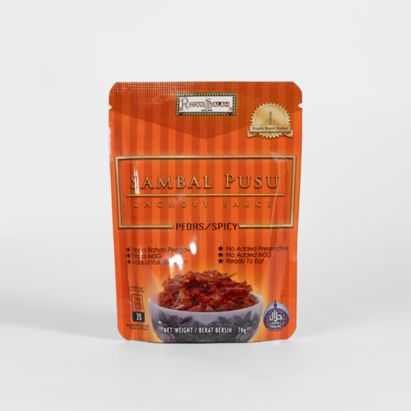 Rizqussalam’s Sambal are types of sauces with a dense texture containing fish, anchovy and dried squid. The people of Brunei enjoy mixing Sambal into their dishes, and it can be eaten alone with white rice, sandwich or mixed with preferred vegetables and other foods. It is used to enhance their appetite and food preferences to the fullest.