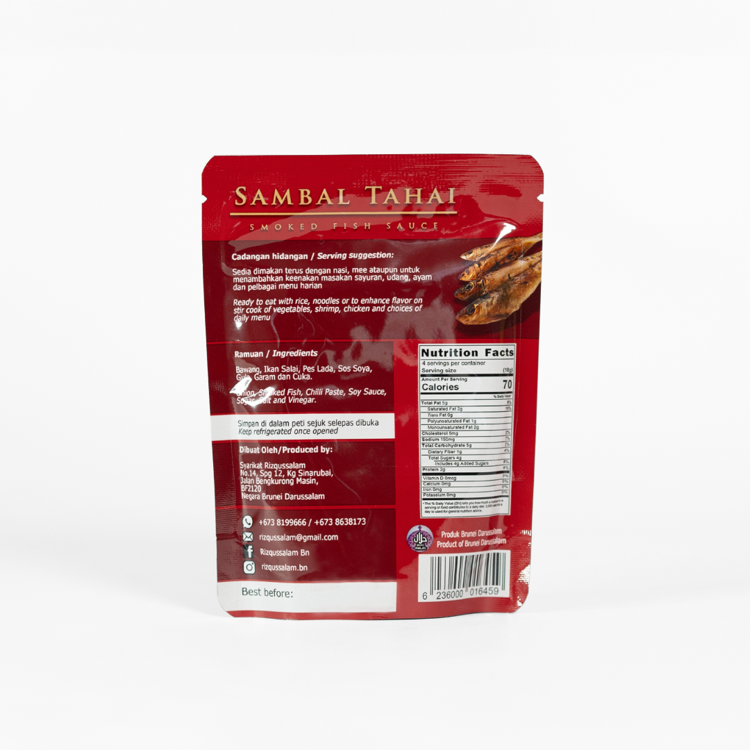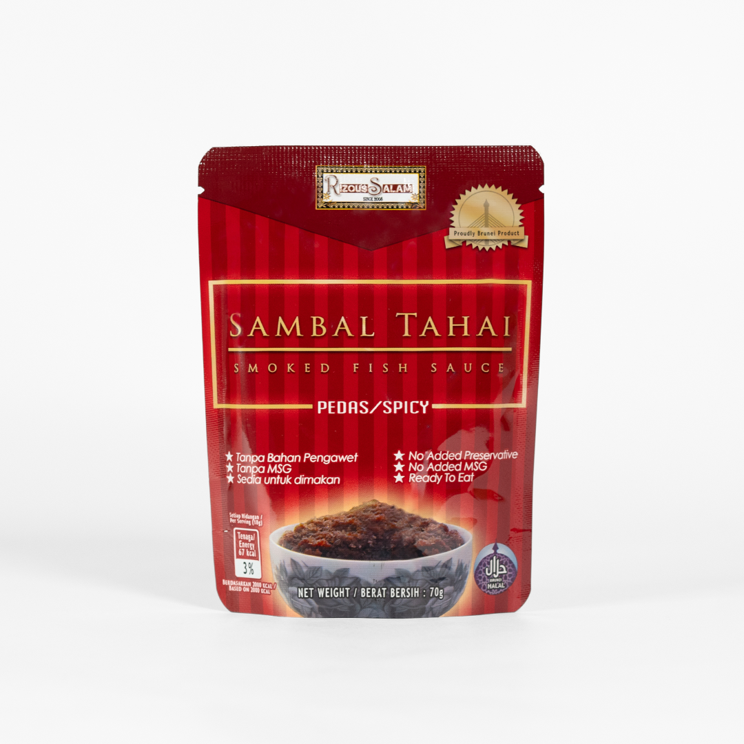 Rizqussalam’s Sambal are types of sauces with a dense texture containing fish, anchovy and dried squid. The people of Brunei enjoy mixing Sambal into their dishes, and it can be eaten alone with white rice, sandwich or mixed with preferred vegetables and other foods. It is used to enhance their appetite and food preferences to the fullest.